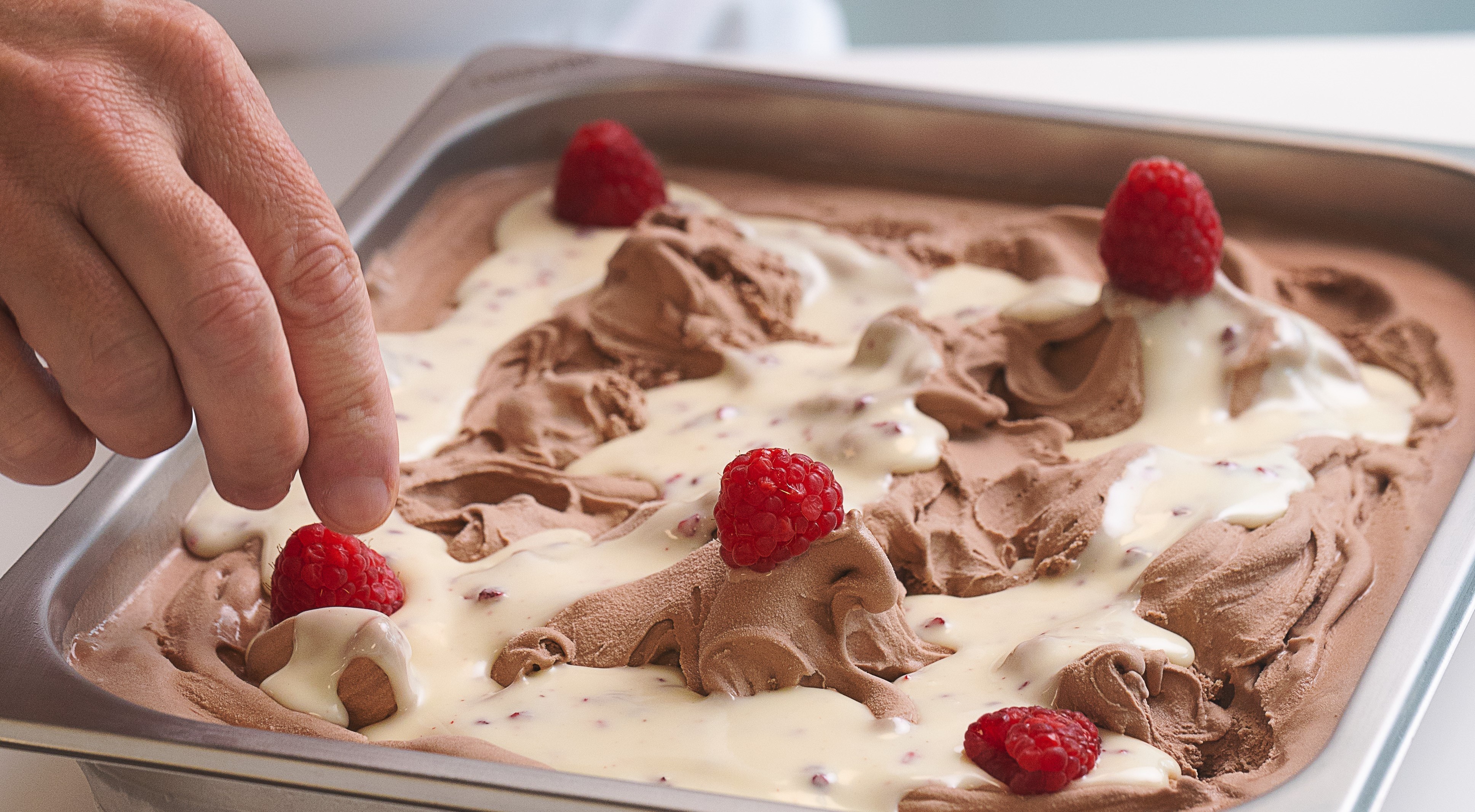 Combinando a leveza do chocolate branco com a delicada acidez da framboesa, Ciocco Lampone traz um equilíbrio perfeito entre indulgência e sofisticação - e transforma sorvetes, picolés e gelatos em verdadeiras obras de arte.